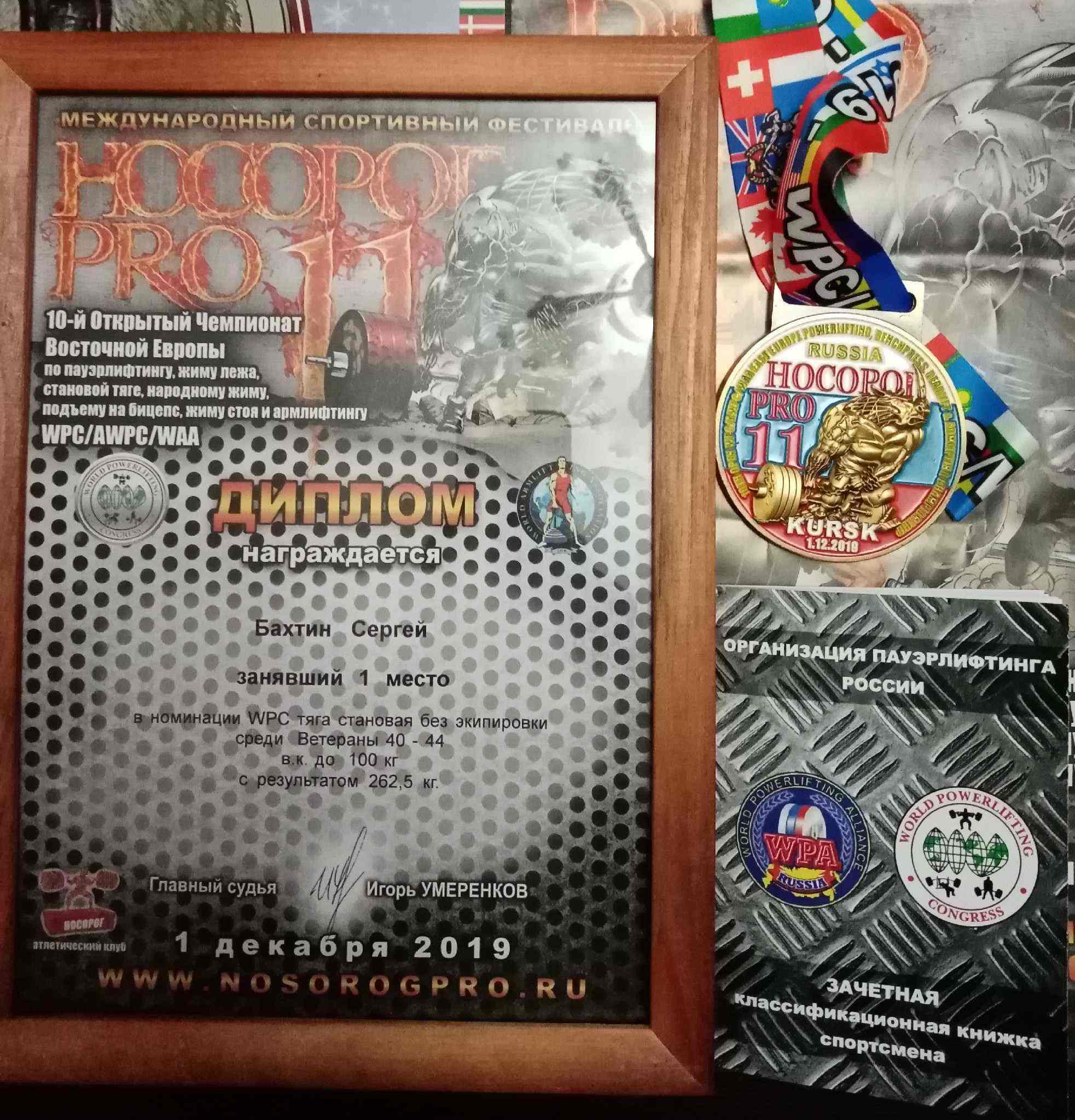 Выступал в дисциплине "становая тяга без экипировки" WPC. Занял 1 место в категории до 100 кг. "Ветераны 40-44", с результатом 262,5 кг. попутно выполнив норматив КМС в становой тяге по версии федерации WPC/AWPC.