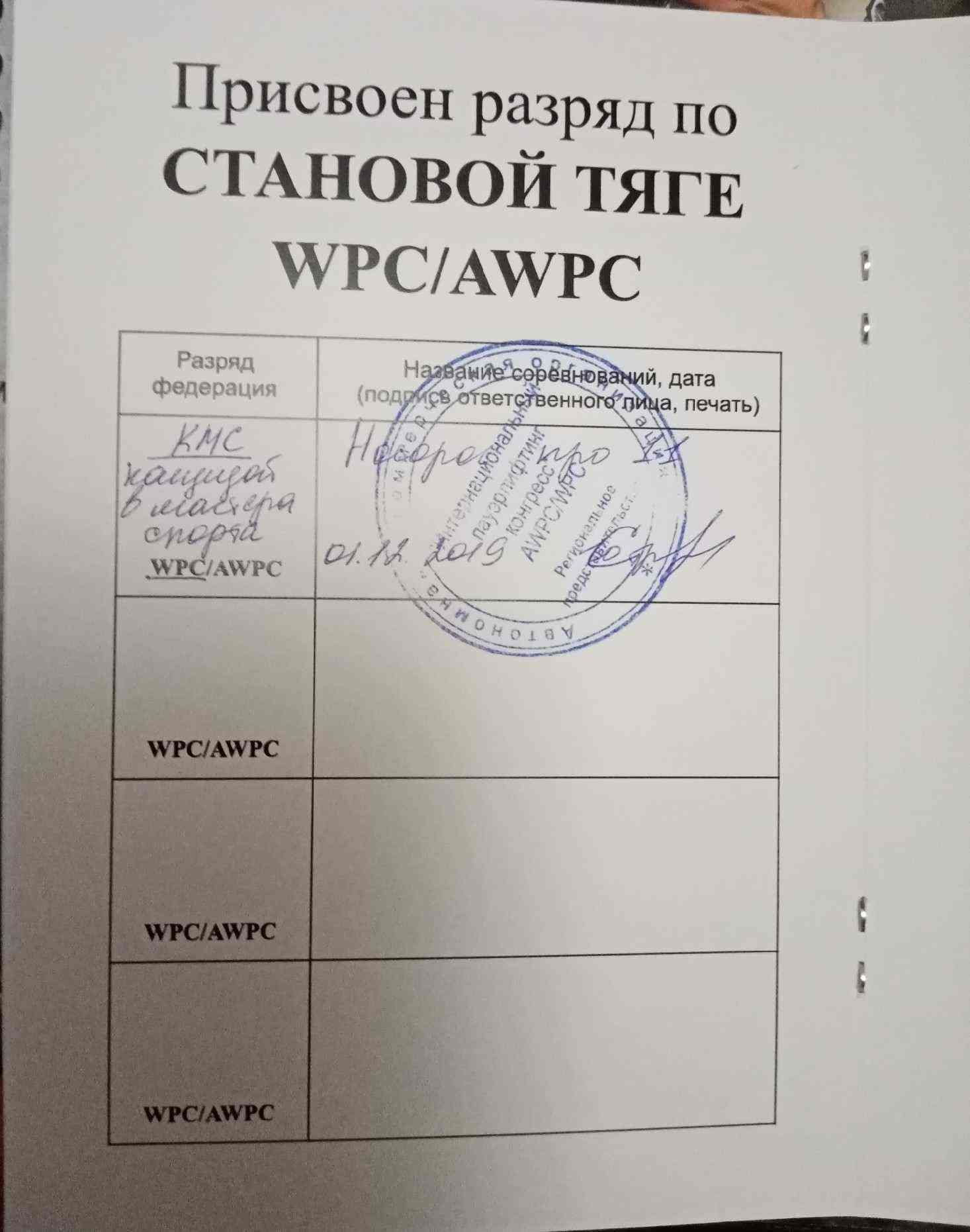 1 декабря 2019 года принял участие в составе команды "Богатыри Орловщины" в 10-м открытом Чемпионате Восточной Европы по пауэрлифтингу и армлифтингу WPC/AWPC/WAA в г. Курске.